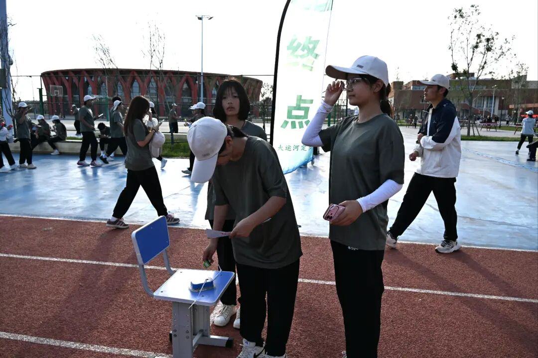 同日下午,活动迎来高潮——反诈主题定向越野赛正式启动。启动仪式由我校学生工作处处长高鹏主持,我校党委委员、副校长付振林,新华区政府副区长、公安分局局长张俊峰,副局长回毅等出席。付振林在致辞中表示,将反诈知识与定向运动相结合,创新了安全教育形式,提升了活动的趣味性和参与度。回毅现场发布了新华区反诈数字IP形象“闻远声”。张俊峰在讲话中呼吁师生积极成为反诈宣传的参与者与实践者。随后,运动员与裁判员代表依次庄严宣誓。来自我校、沧州工贸学校和沧州职业技术教育中心的1200名学生以3人小组为单位,在操场集结待发。赛事别出心裁地将打卡点与反诈知识问答相结合,参赛者需按图索骥,使用指卡器在指定点位完成打卡答题,在奔跑中巩固反诈知识。比赛分大专组与中专组进行,现场气氛热烈,学子们热情投入,在体能锻炼中进一步织密了心理防线。