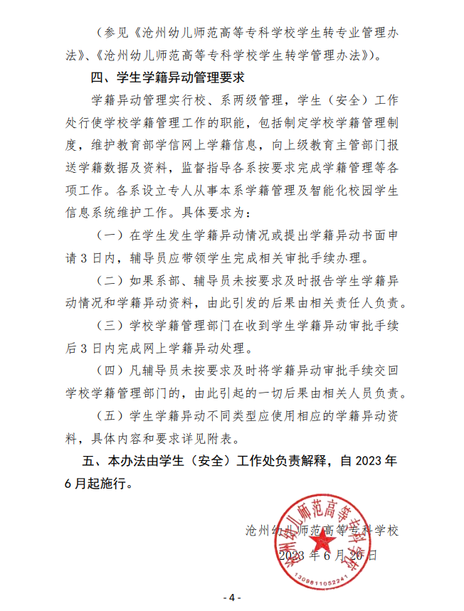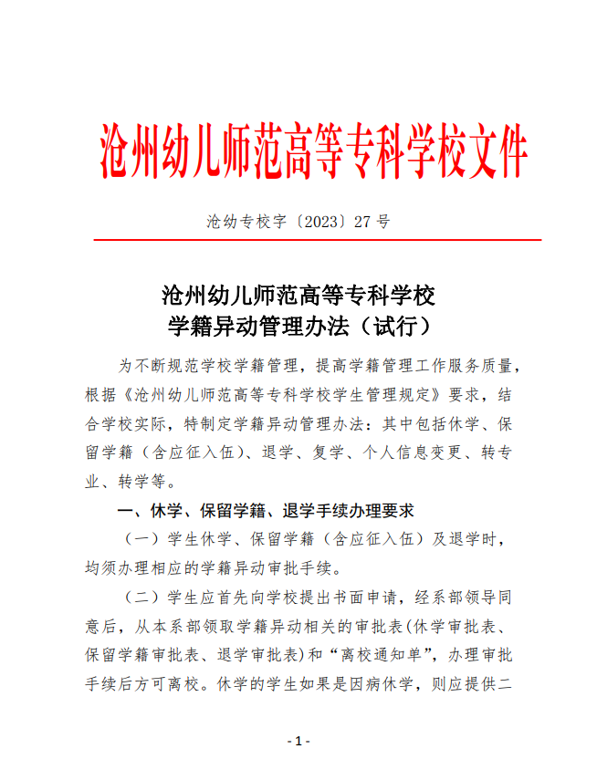沧幼专校字〔2023〕27号 学籍异动管理办法(试行)